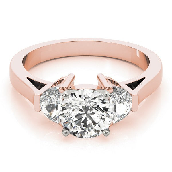 Elegant Trio Design: Round center diamond with soft half moon sides