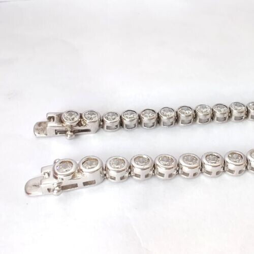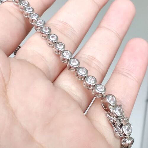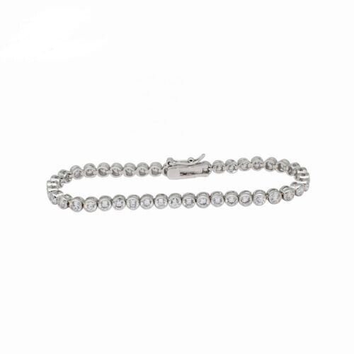 2.50Ct H-I/SI Natural Round Diamond Bezel-Set Tennis Bracelet | 9K White Gold | UK Hallmarked