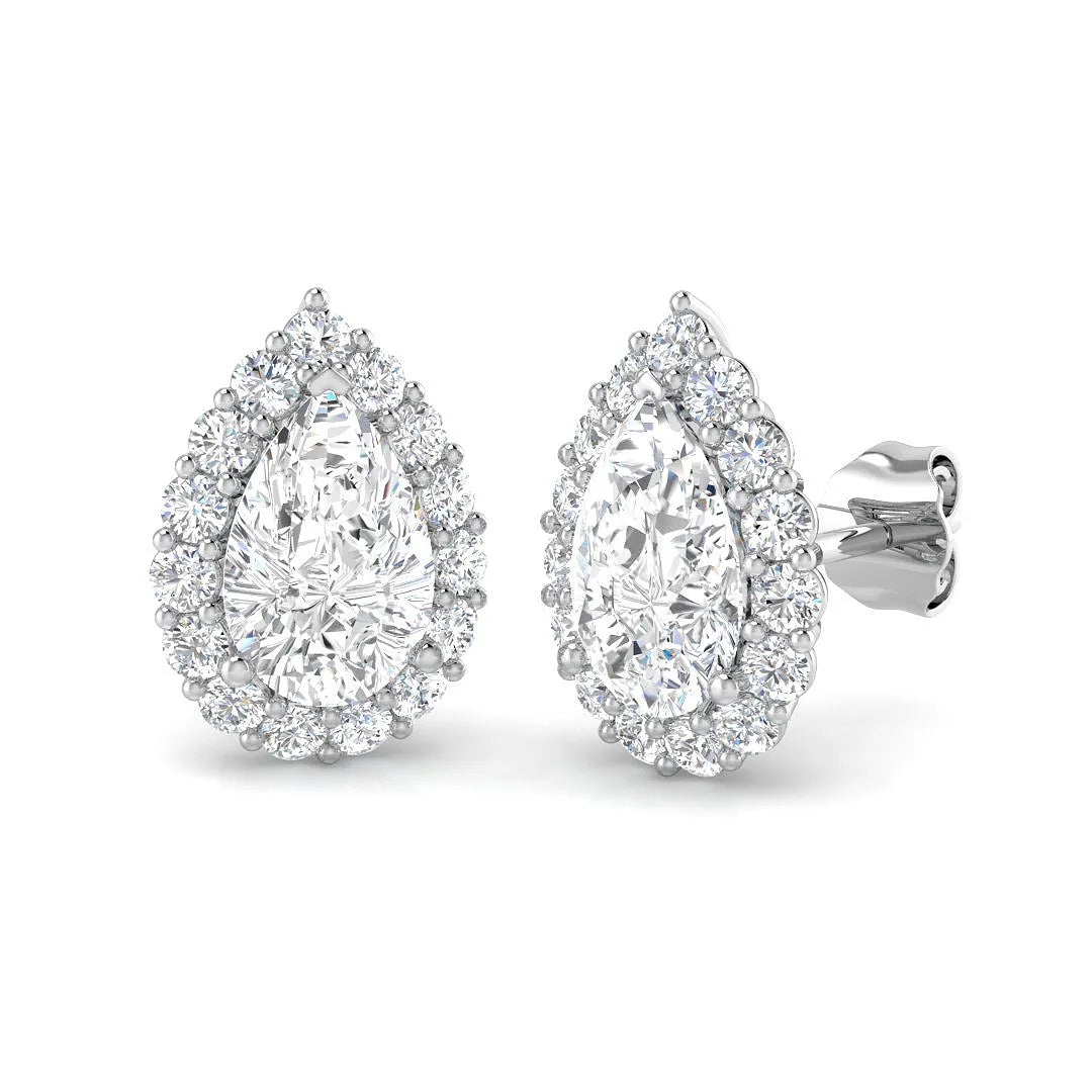 2.50 Carat Pear Cut Diamond Halo Earring In Hallmarked Gold
