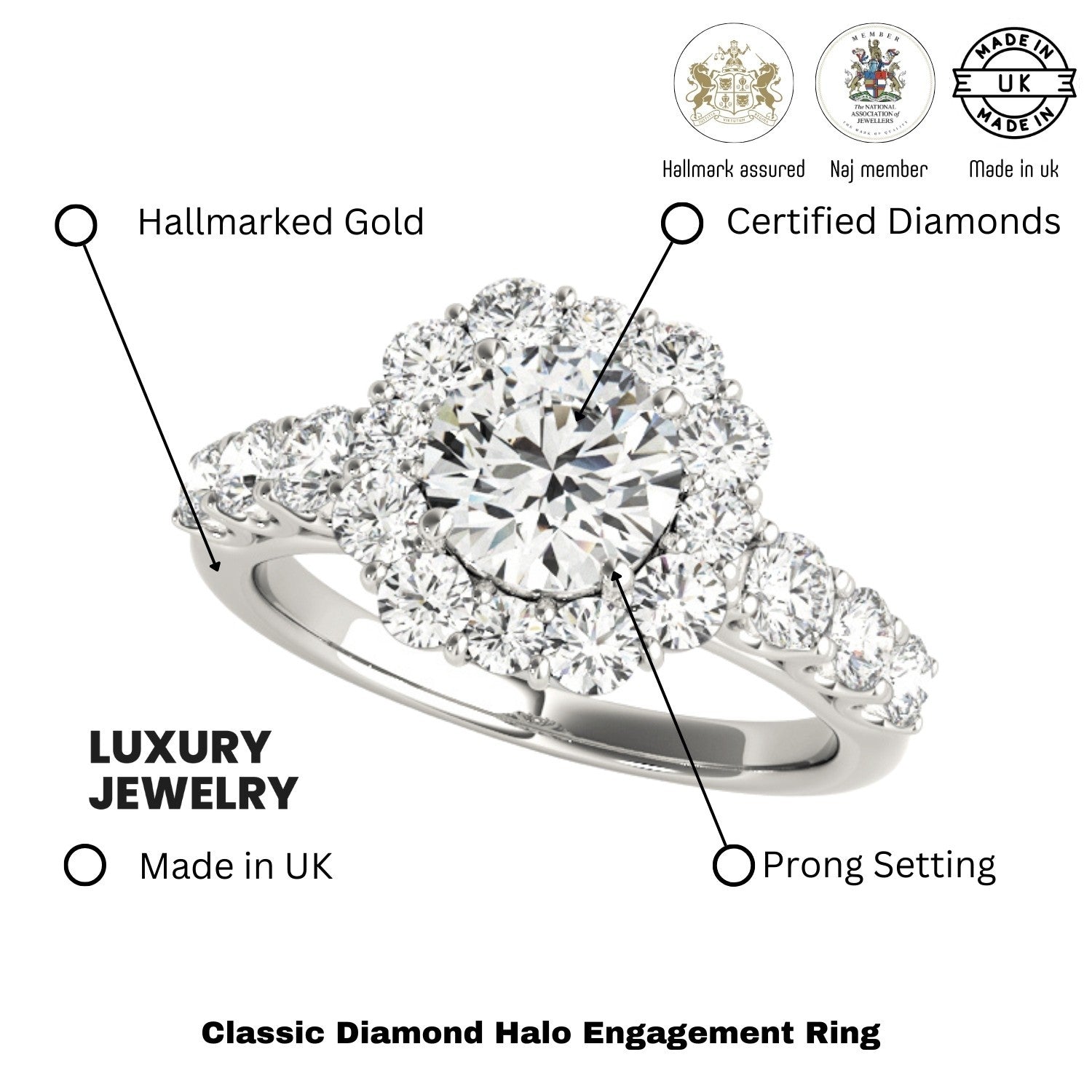 Available in 9K, 18K White, Yellow, Rose Gold, or Platinum, with total diamond weights ranging from 1.00Ct to 3.00Ct, each ring is handcrafted in the UK and hallmarked by the UK Assay Office for guaranteed quality and authenticity.