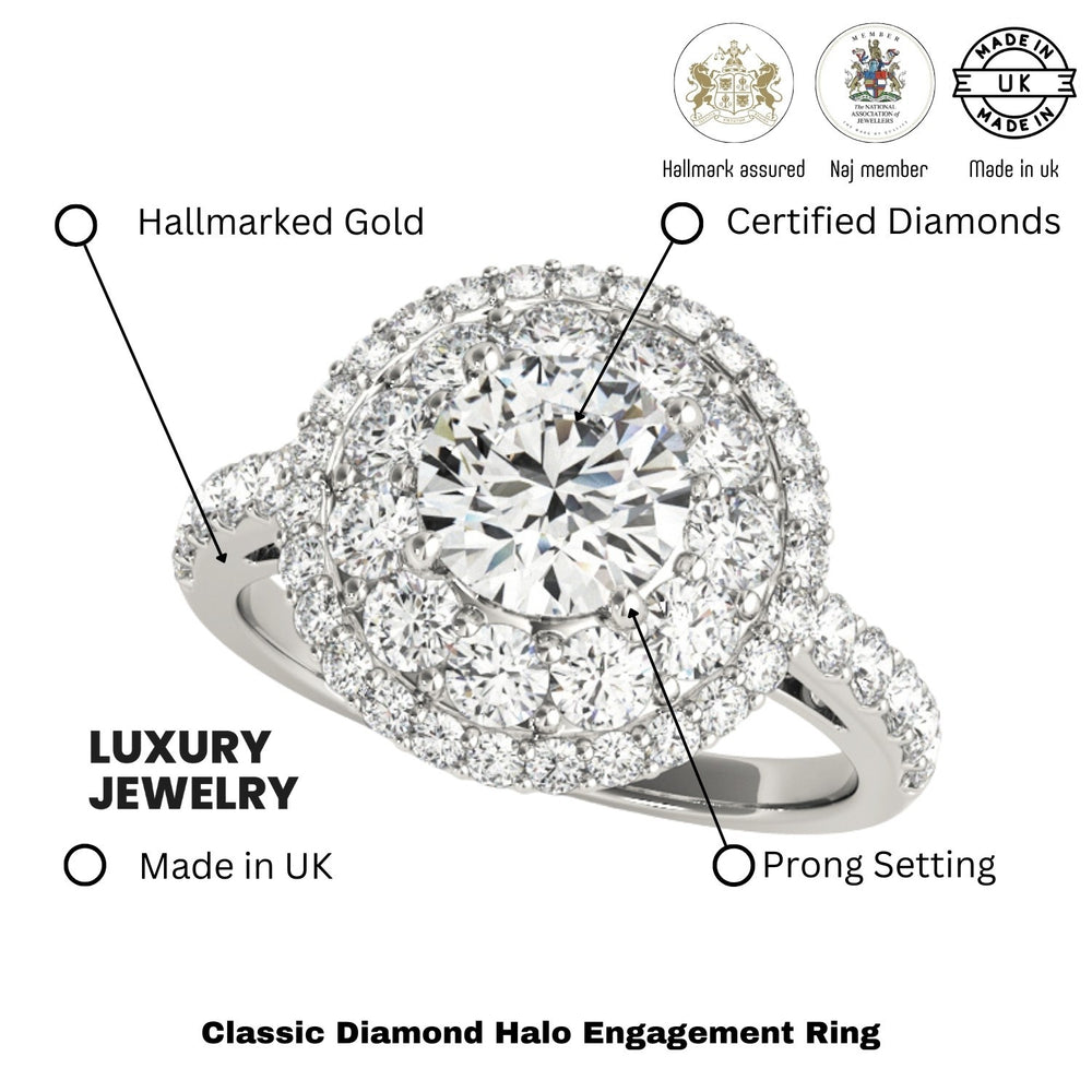 Available in 9K, 18K White, Yellow, Rose Gold, or Platinum, with total diamond weights ranging from 1.00Ct to 3.00Ct, each ring is handcrafted in the UK and hallmarked by the UK Assay Office for guaranteed quality and authenticity.
