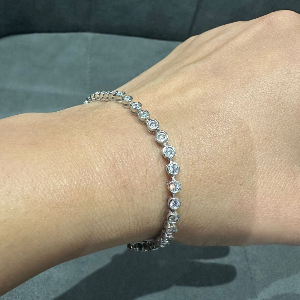 Enhance your jewelry collection with this elegant bezel-set tennis bracelet, expertly crafted in high-quality 925 sterling silver. Featuring 2.00 carats of round lab-grown diamonds, each stone is individually bezel set to create a sleek, modern, and secure design that radiates brilliance from every angle.