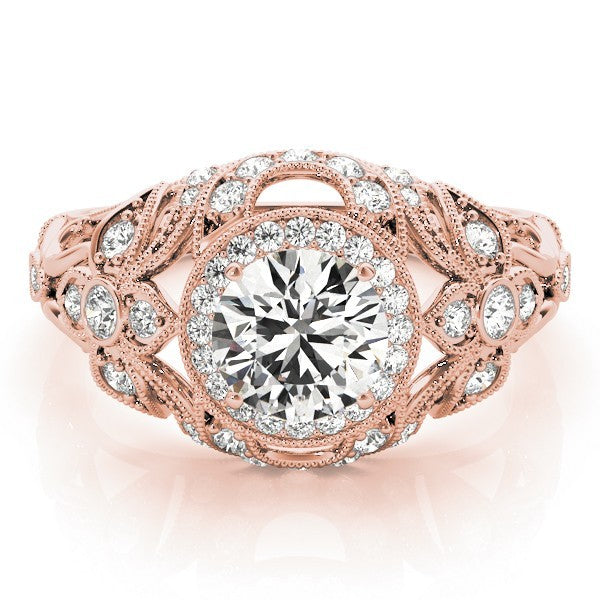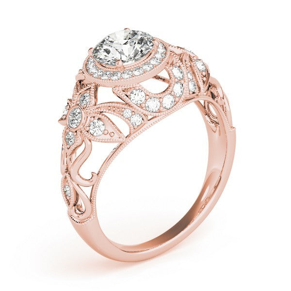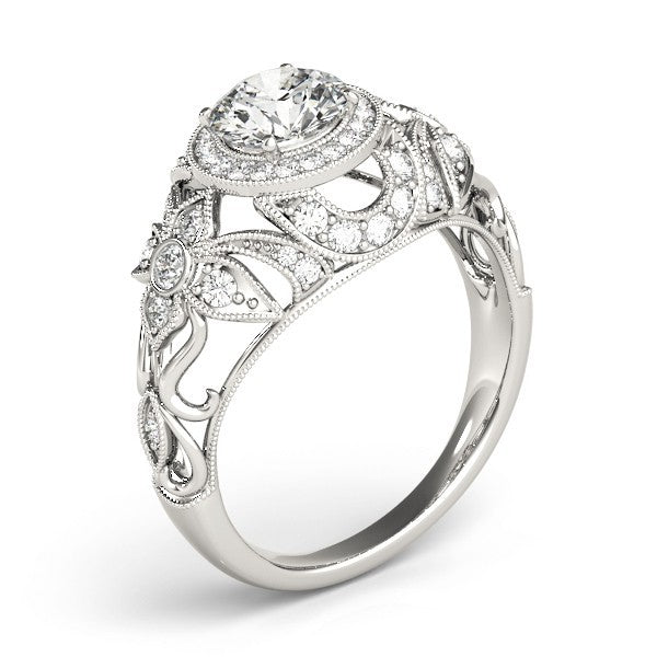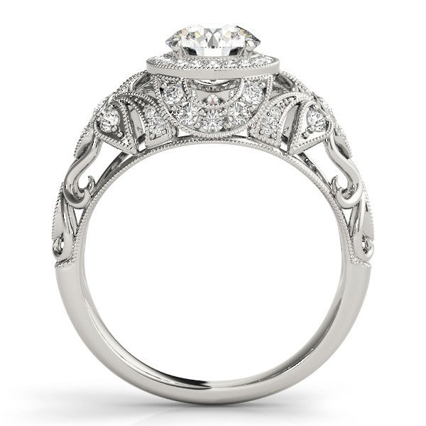 Round Cut Center with Round Prong Side Diamonds & Art Deco Milgrain Design Engagement Ring