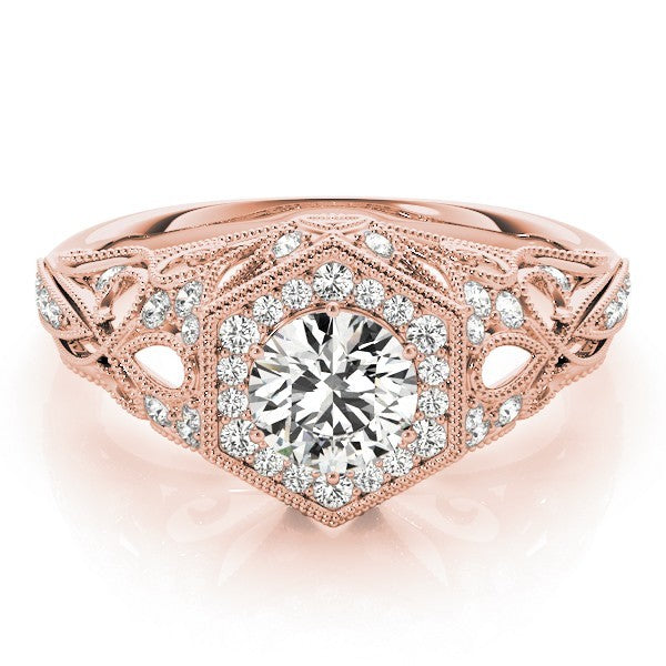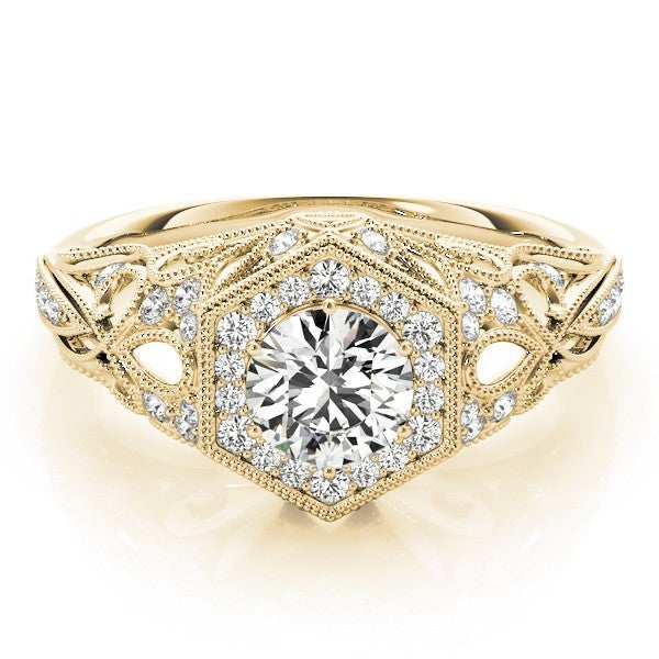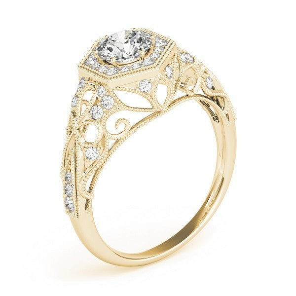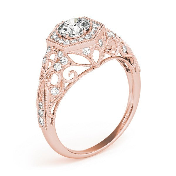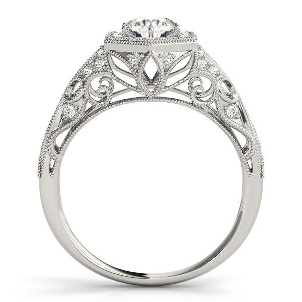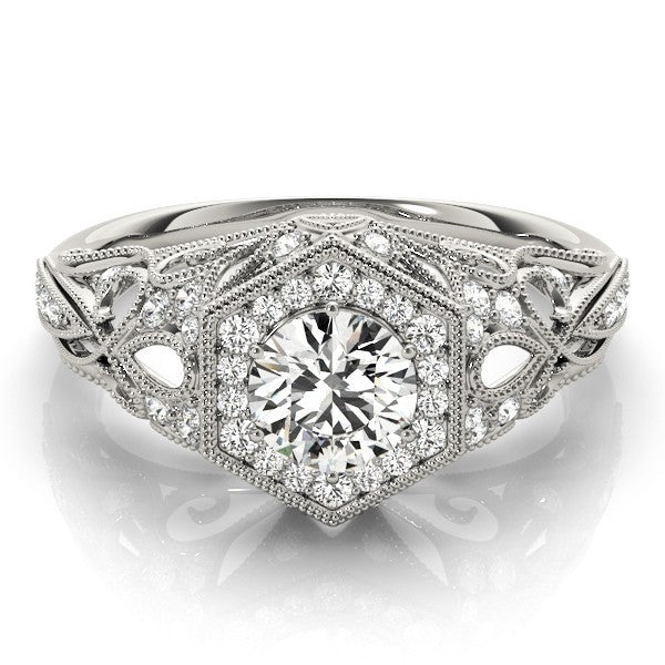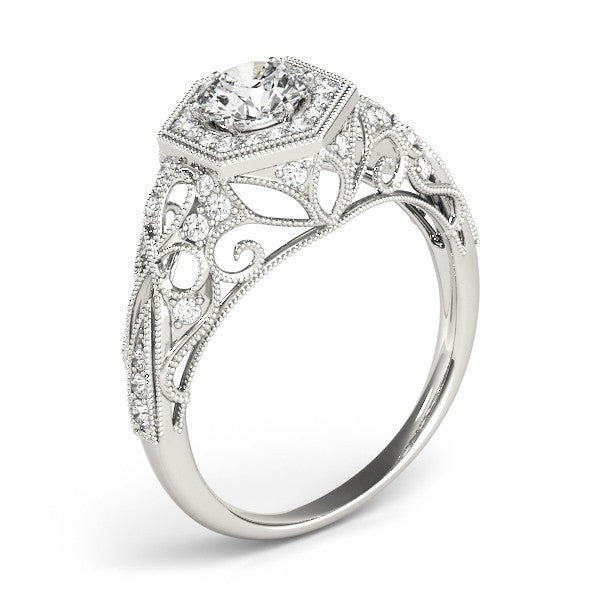 Round Cut Center with Round Prong Side Diamonds & Art Deco Milgrain Design Engagement Ring