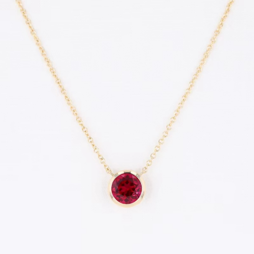 Discover radiant charm with our Bezel-Set Round Ruby Solitaire Pendant Necklace (without chain).
