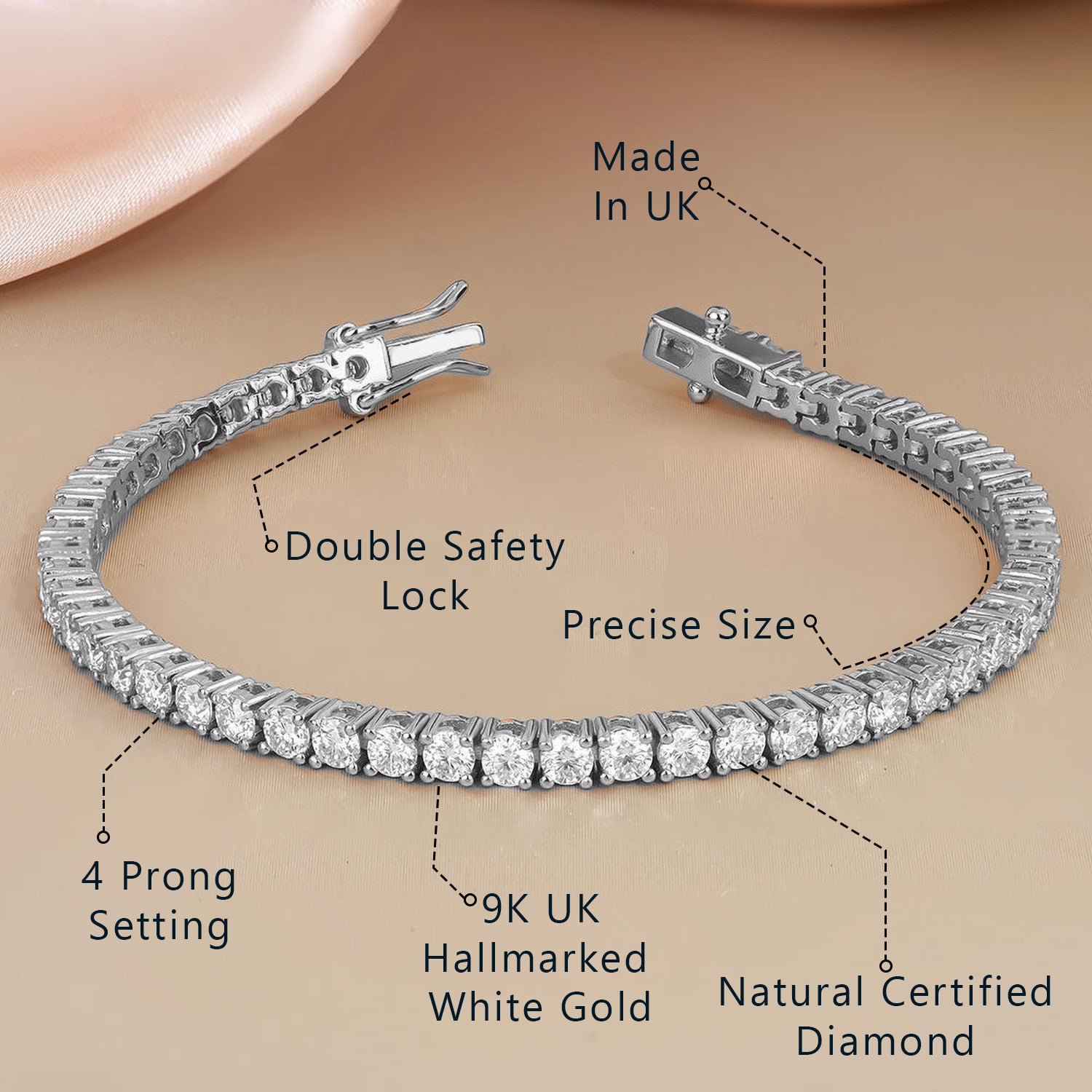 💎 2.00Ct 100% Natural Diamond Tennis Bracelet | 9K White Gold | 4-Claw Set | UK Hallmarked | H-I/SI | 7"–7.49" Inches