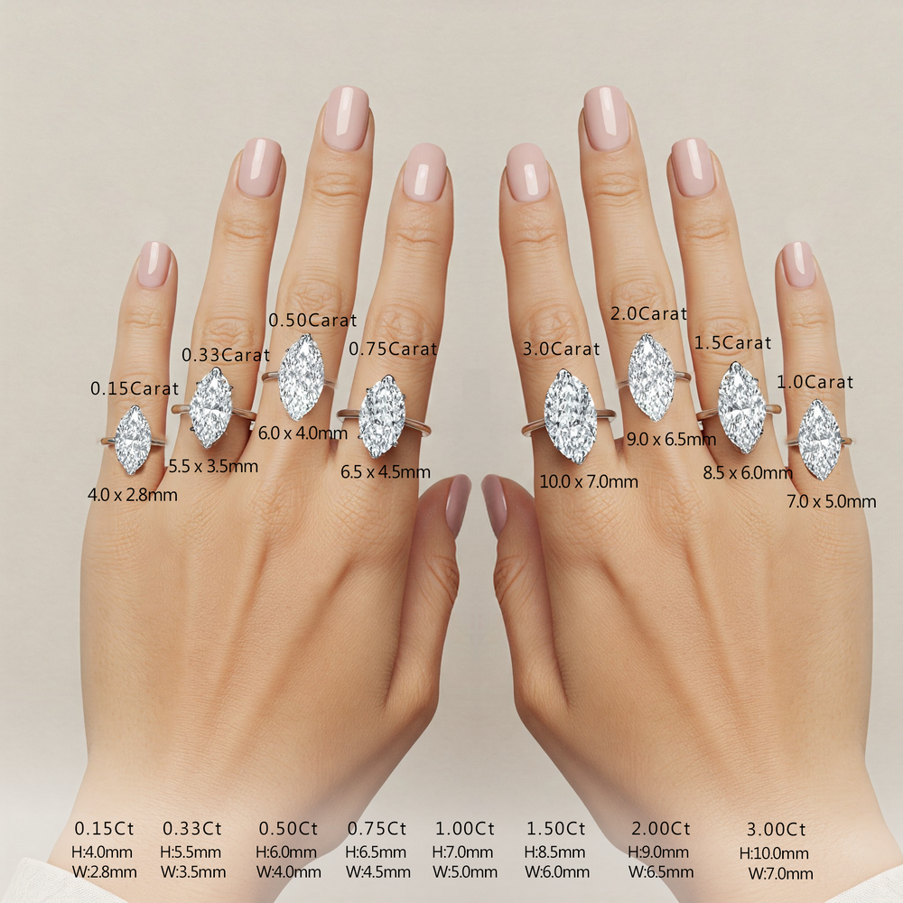 Celebrate love with the Lab-Grown Diamond Solitaire Engagement Ring, featuring a stunning Marquise Cut diamond in D color and VVS clarity. Available in 0.50Ct to 2.00Ct and crafted in 9K or 18K white, yellow, rose gold, or platinum, it’s timeless, elegant, and sustainable.