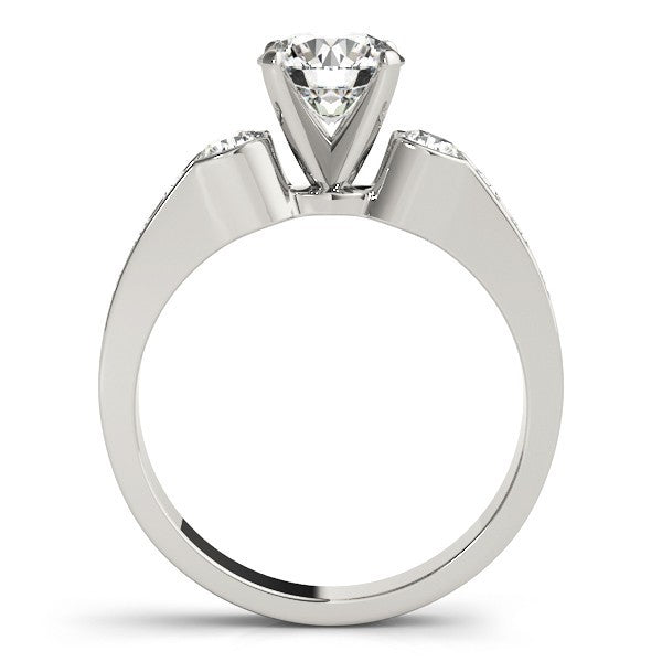 Setting Style: Trilogy Prong Set (3-Stone Design) with Bezel-Set Side Diamonds (Diamonds set securely for maximum light reflection)