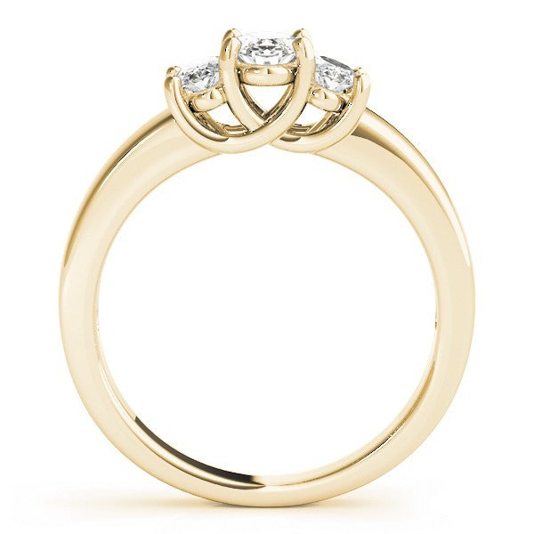 This graceful DE/VS Lab Grown Diamond Trilogy Engagement Ring features a luminous oval-cut center diamond flanked by two perfectly matched oval-cut side diamonds. The harmonious three-stone arrangement symbolizes your past, present, and future, delivering both sparkle and symmetry in a soft, elongated silhouette that flatters every hand.