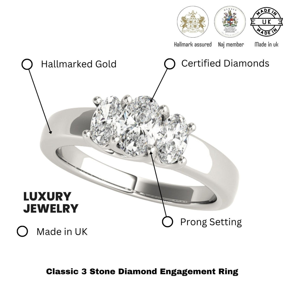 Celebrate your love story with this all-oval Trilogy Engagement Ring, designed to capture both tradition and modern elegance. The lab-grown oval-cut center diamond is framed by two equally graceful oval side diamonds, creating a seamless line of sparkle across the finger. Known for its flattering shape and exceptional brilliance, the oval cut adds a contemporary touch to the classic three-stone concept.