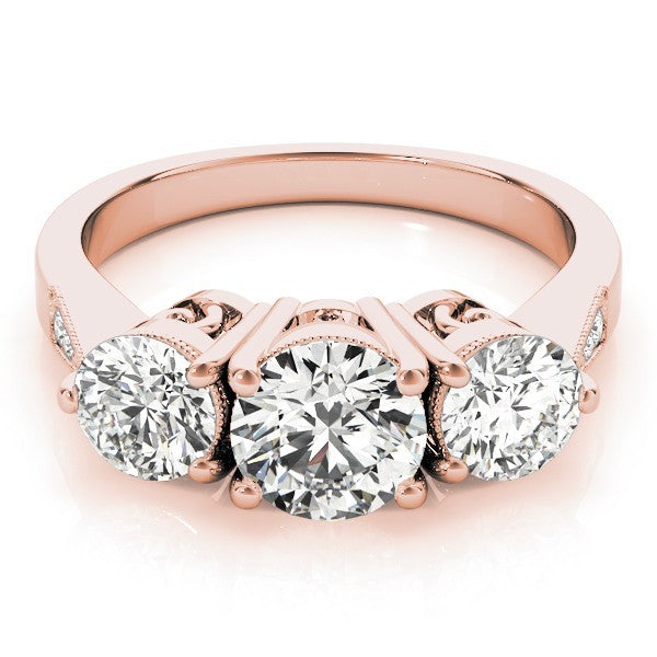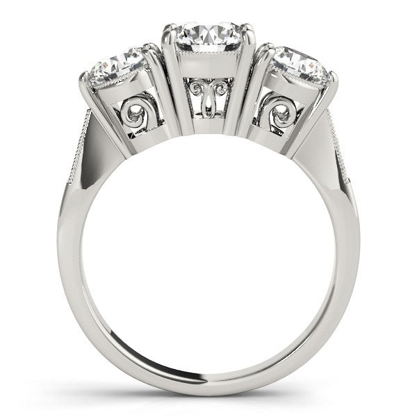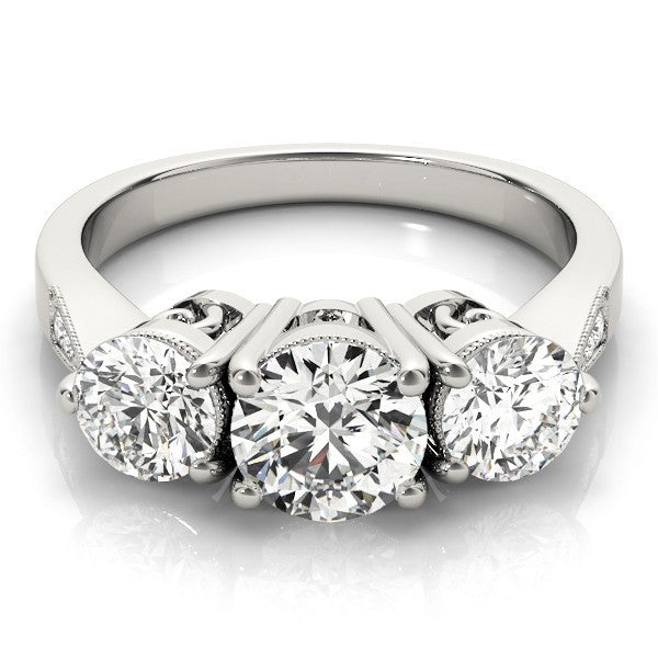 Timeless Design: The trilogy design with round diamonds symbolizes the past, present, and future of your love.