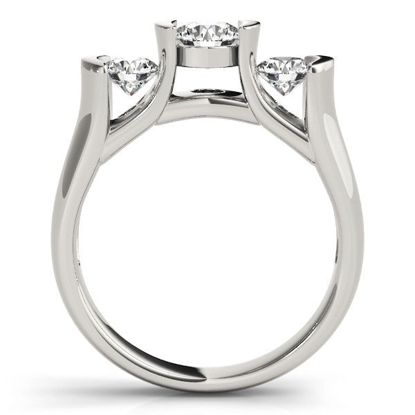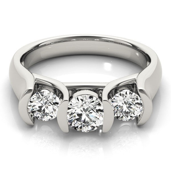 Lab Grown Round Diamond 3 Stone Engagement Ring Platinum -Bar Set