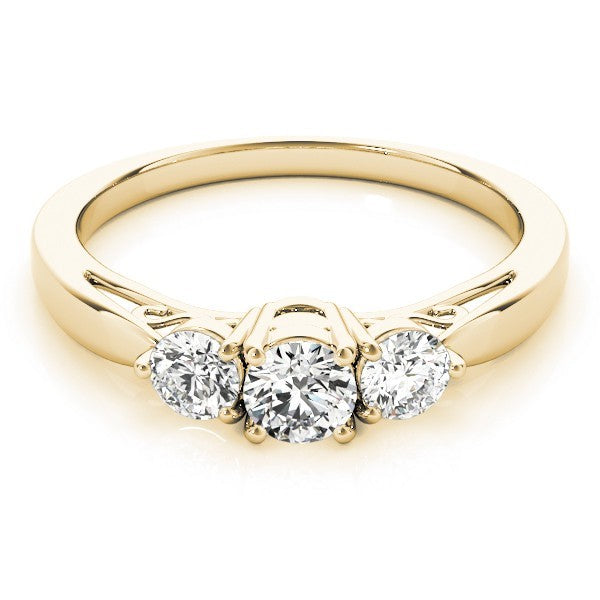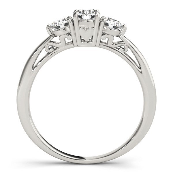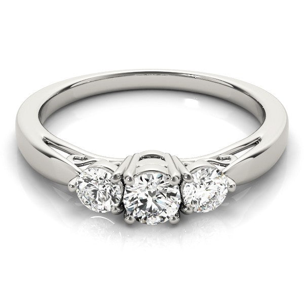 Timeless Design: The 3-stone (trilogy) design with round diamonds symbolizes the past, present, and future.