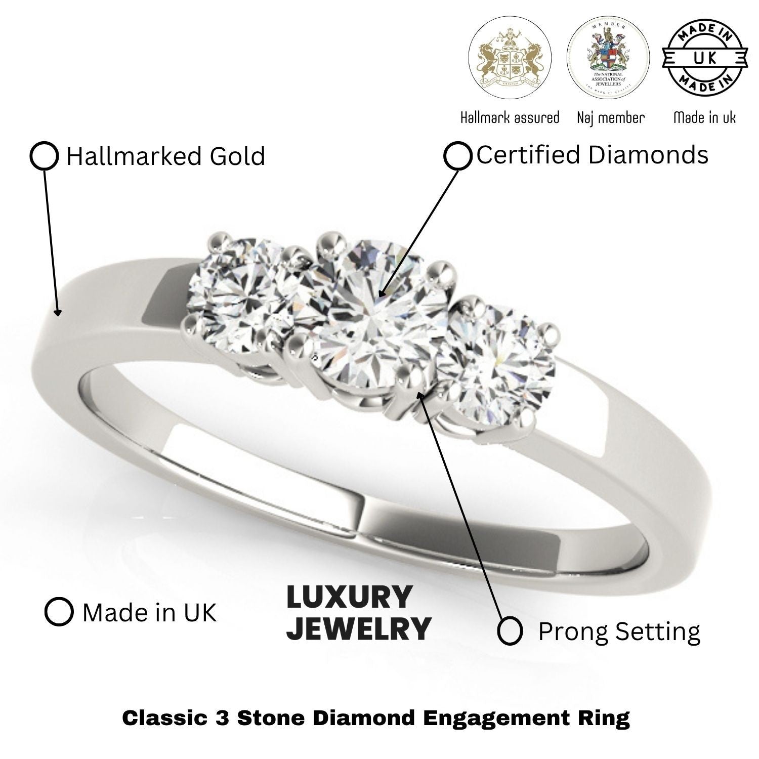 This trilogy engagement ring is perfect for those seeking luxury, sustainability, and a timeless design. Made in the UK and hallmarked by the UK Assay Office, it guarantees both authenticity and top-tier craftsmanship.