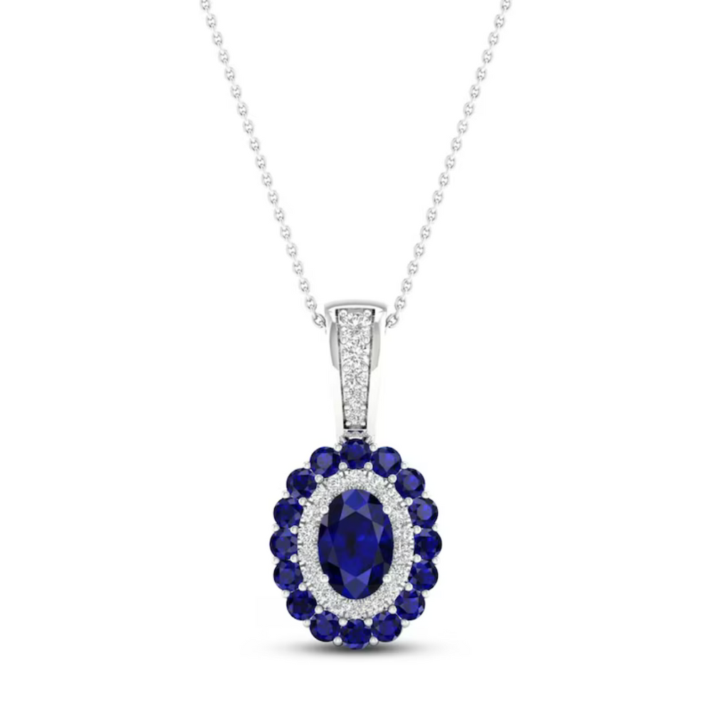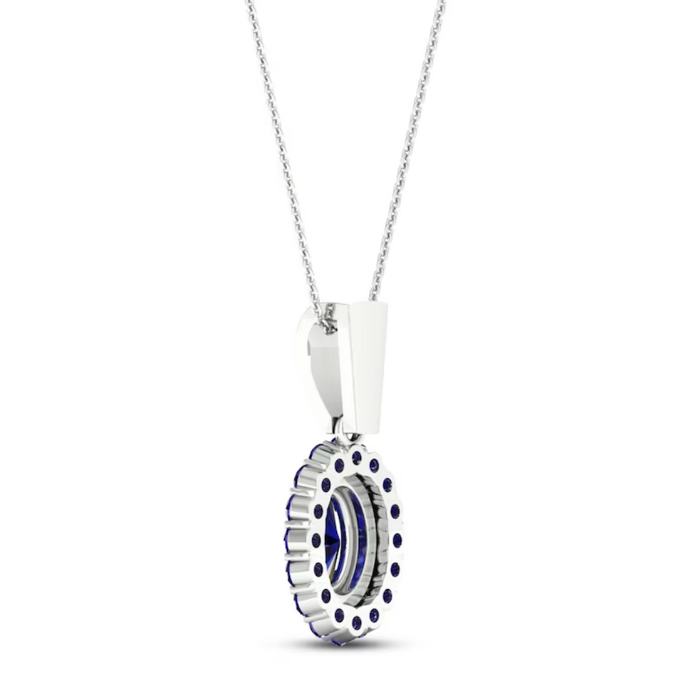 Oval Blue Sapphire and Diamond Pendant in 18K White Gold