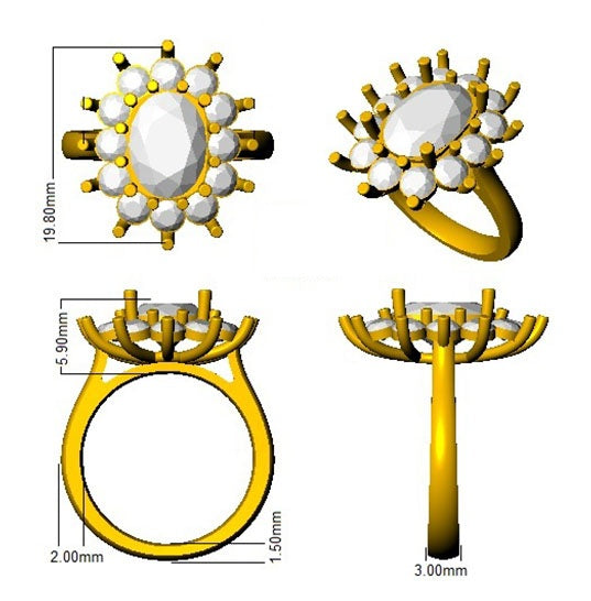 Surrounded by a beautifully designed floral diamond halo, this ring features a flower-inspired cluster that enhances the brilliance and size of the centre stone. The surrounding round diamonds provide exceptional sparkle, creating a truly eye-catching and premium finish.