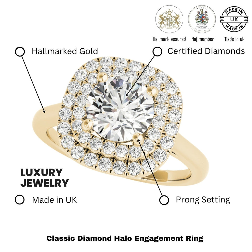 Available in 9K, 18K White, Yellow, Rose Gold, or Platinum, with total diamond weights ranging from 0.50Ct to 2.00Ct, each ring is handcrafted in the UK and hallmarked by the UK Assay Office for guaranteed quality and authenticity.