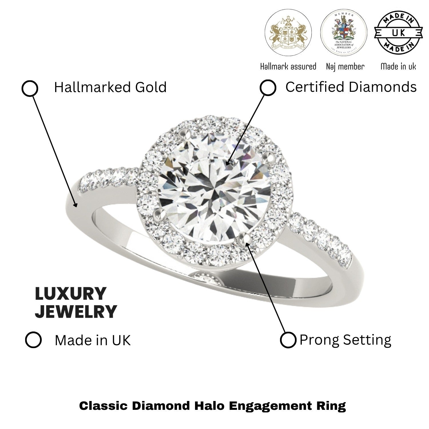 Available in 9K, 18K White, Yellow, Rose Gold, or Platinum, with total diamond weights ranging from 0.50Ct to 2.00Ct, each ring is handcrafted in the UK and hallmarked by the UK Assay Office for guaranteed quality and authenticity.