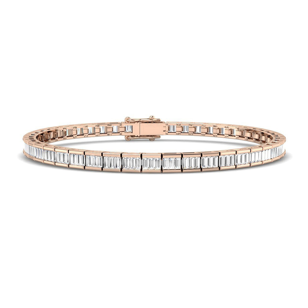 Add a touch of luxury to your collection with this exquisite baguette diamond tennis bracelet, beautifully designed with a refined single-line silhouette showcasing precision-cut baguette diamonds expertly secured in a sleek channel setting. The clean, linear design highlights the natural elegance of baguette diamonds, creating a modern, sophisticated look with uninterrupted brilliance and smooth contours.