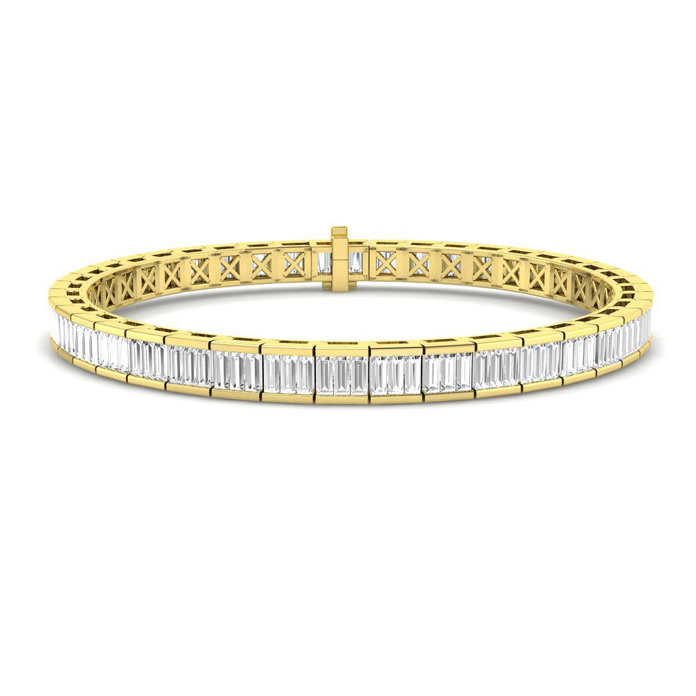 Expertly handcrafted in your choice of 9K or 18K Yellow, White, or Rose Gold, as well as premium 950 Platinum, this bracelet seamlessly blends timeless craftsmanship with contemporary refinement. The channel-set baguette diamonds offer a streamlined appearance while ensuring durability and comfort for everyday wear.