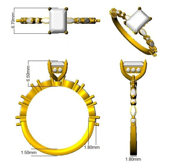 This refined emerald cut diamond engagement ring showcases a striking step-cut centre stone, prized for its clean geometry and sophisticated brilliance. The emerald cut diamond is held securely in a classic prong setting, allowing light to reflect beautifully through its elongated facets.