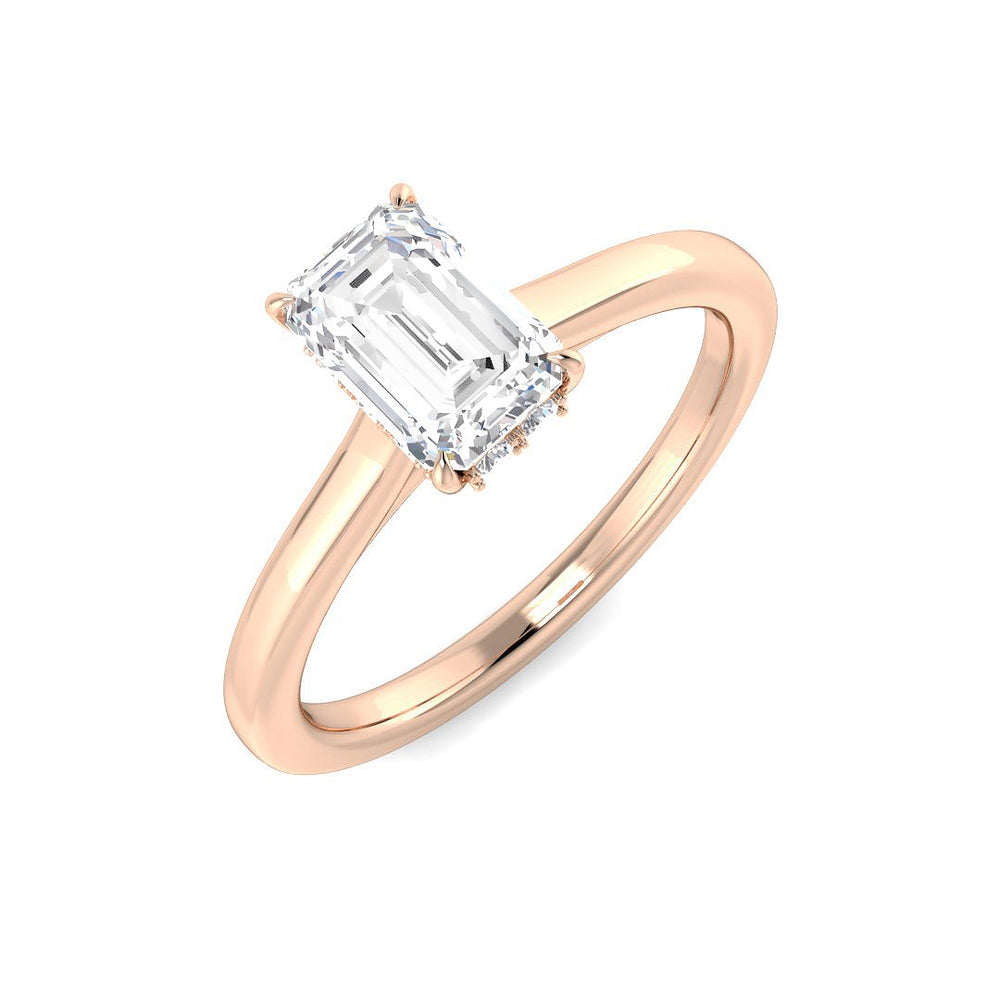 Exude timeless elegance with this emerald cut lab grown diamond solitaire ring, beautifully crafted in polished white gold. The emerald cut diamond is celebrated for its clean lines, hall-of-mirrors brilliance, and understated luxury, making it a refined choice for those who appreciate classic design with modern values.