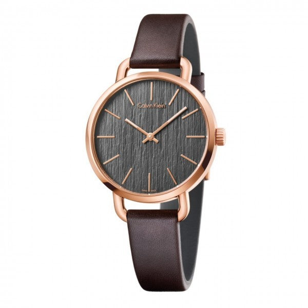 Add a touch of refined elegance with the Calvin Klein Even K7B236G3 Ladies Watch. Crafted with a durable stainless-steel case and bracelet, this timepiece features a minimalist grey dial that perfectly balances sophistication and everyday versatility. Powered by precise Swiss quartz movement, it ensures reliable performance while maintaining Calvin Klein’s signature contemporary style.