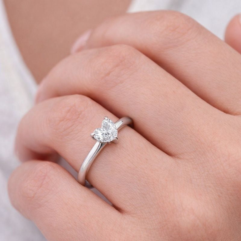 Celebrate love with this elegant heart shape diamond solitaire ring, designed to symbolise romance and commitment. The beautifully cut heart diamond is secured in a refined prong setting, allowing maximum light to enhance its brilliance while maintaining a soft, feminine profile.