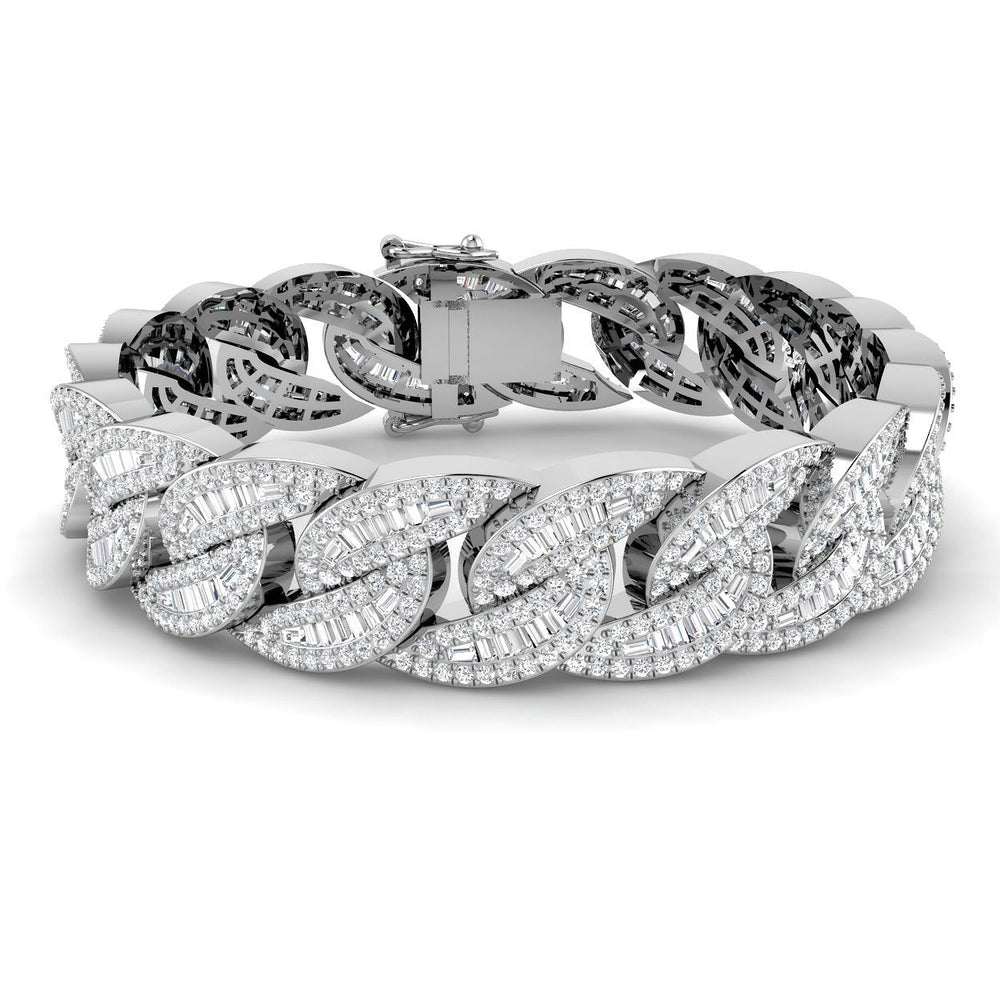 Add a bold touch of luxury to your collection with this Luxury Fully Iced Baguette Diamond Cuban Chain Bracelet, designed to make a powerful statement. Studded with shimmering baguette and brilliant diamonds, this diamond tennis bracelet features structured Cuban-style links that deliver intense sparkle with a modern, high-end finish.