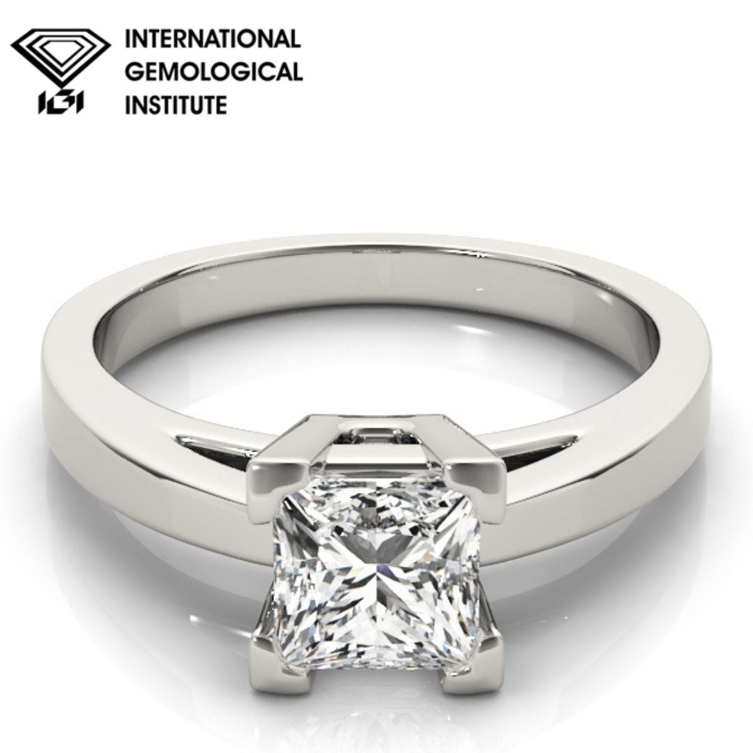 IGI Lab-Grown Princess Cut D-VVS Diamond Solitaire V-Split Engagement Ring.