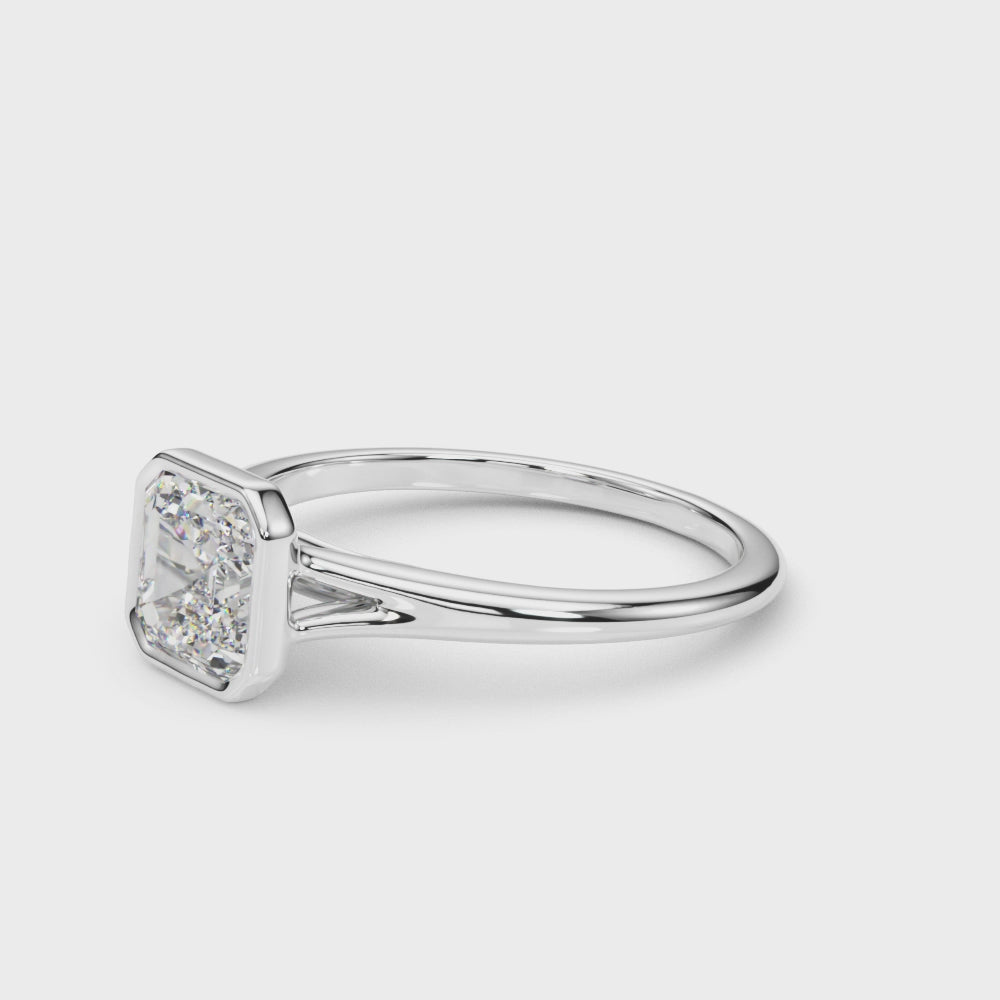 Lab-Grown Asscher Cut Diamond Bezel Set Solitaire Engagement Ring, D Color VVS Clarity