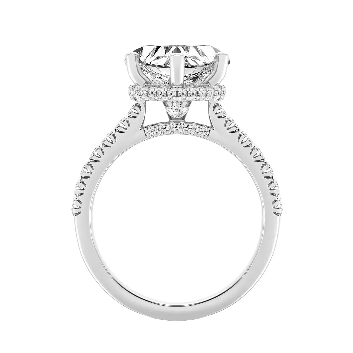 Lab Grown Heart Diamond Hidden Halo Side Stone Engagement Ring