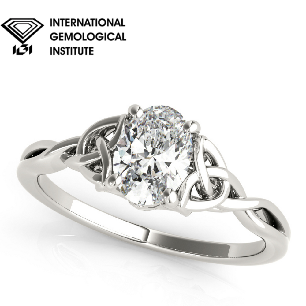 Celebrate love with the Lab-Grown Diamond Solitaire Engagement Ring, featuring a stunning oval diamond with 4-claw setting with Celtic Knot in D color and VVS clarity. Available in 0.50Ct to 2.00Ct and crafted in 9K or 18K white, yellow, rose gold, or platinum, it’s timeless, elegant, and sustainable.