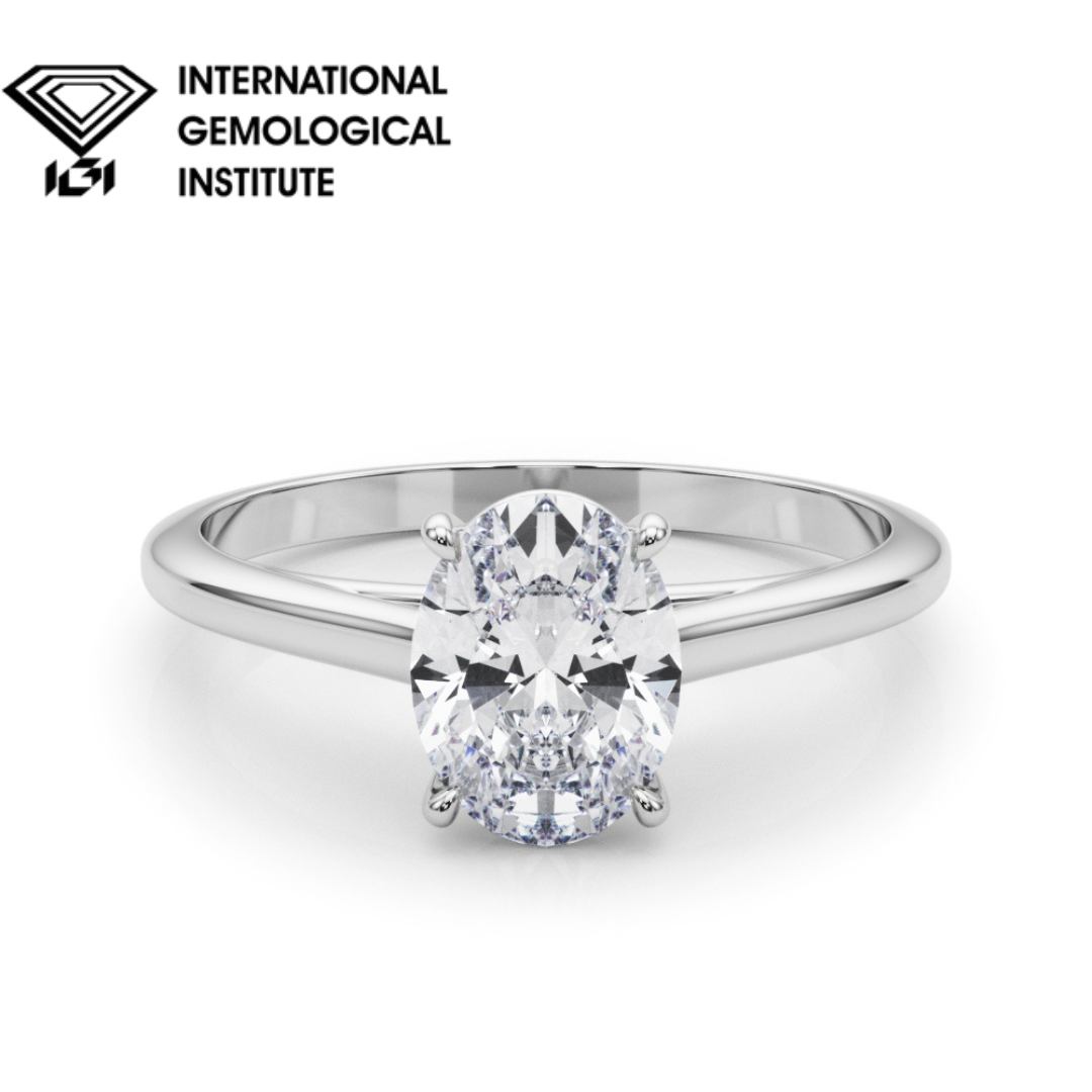 IGI Lab-Grown Oval Diamond 4 Prong Solitaire Engagement Ring, VVS Clarity D Color