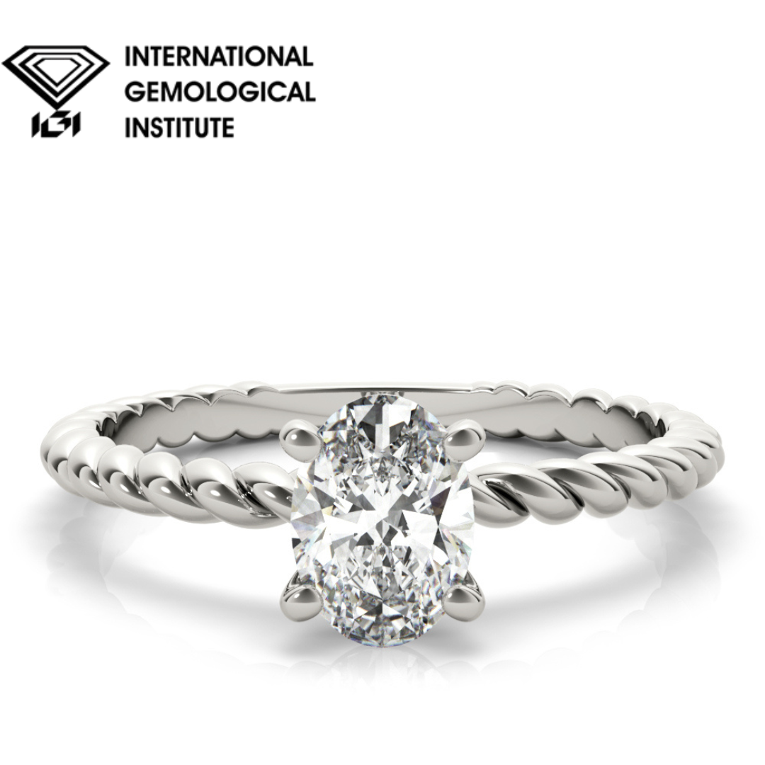 IGI Lab-Grown Oval Diamond 4 Prong Twist Solitaire Engagement Ring, VVS Clarity D Color