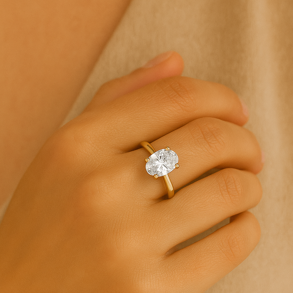 Celebrate love with the Lab-Grown Diamond Solitaire Engagement Ring, featuring a stunning oval diamond with four prong setting in D color and VVS clarity. Available in 0.50Ct to 2.00Ct and crafted in 9K or 18K white, yellow, rose gold, or platinum, it’s timeless, elegant, and sustainable.