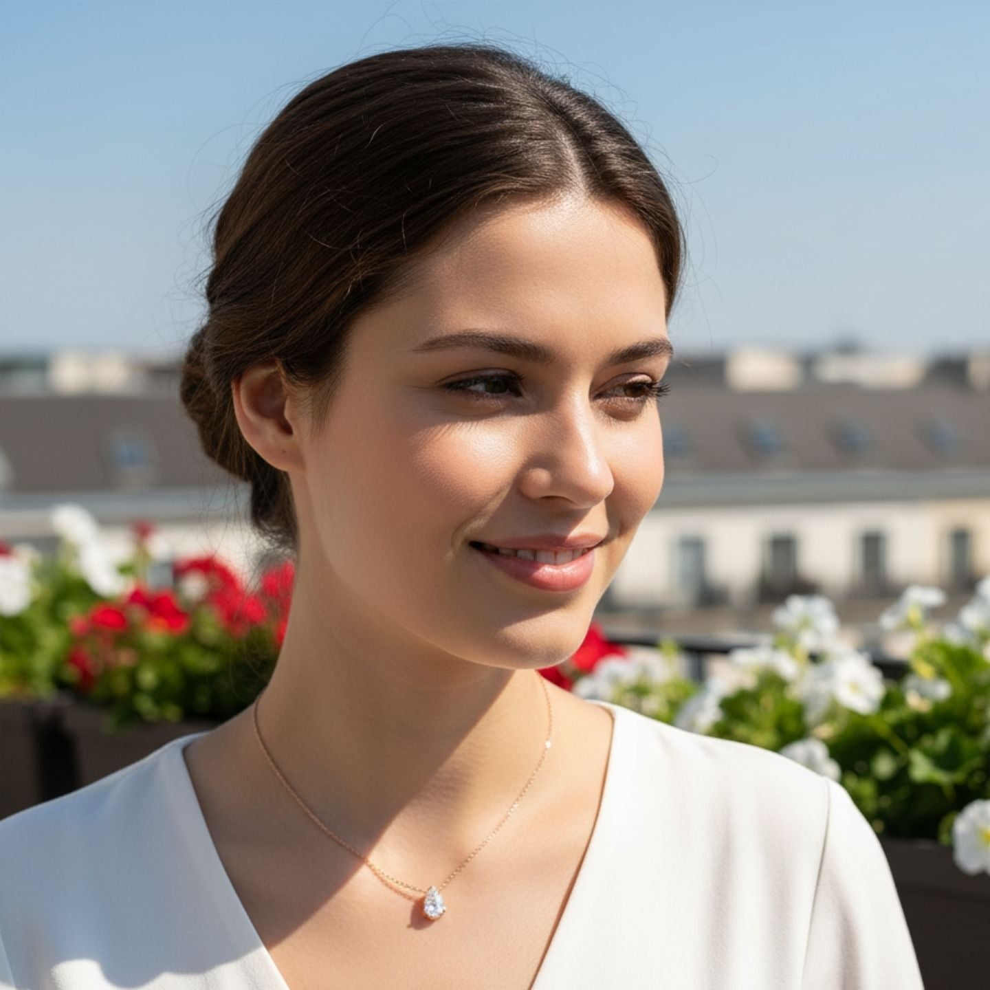 Lab Grown Pear Diamond Necklace | Solitaire Pendant | UK Hallmarked Gold