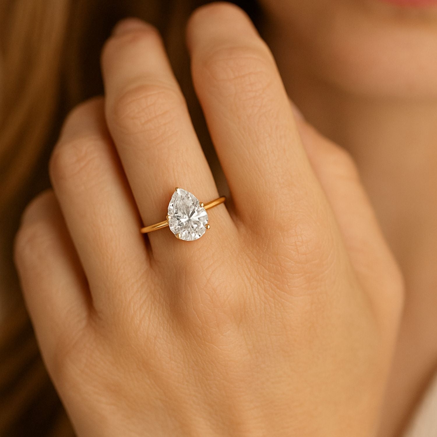 - Diamond Quality: Features a D color, VVS clarity lab-grown pear diamond, offering unparalleled brilliance, fire, and a sustainable alternative to natural diamonds.
