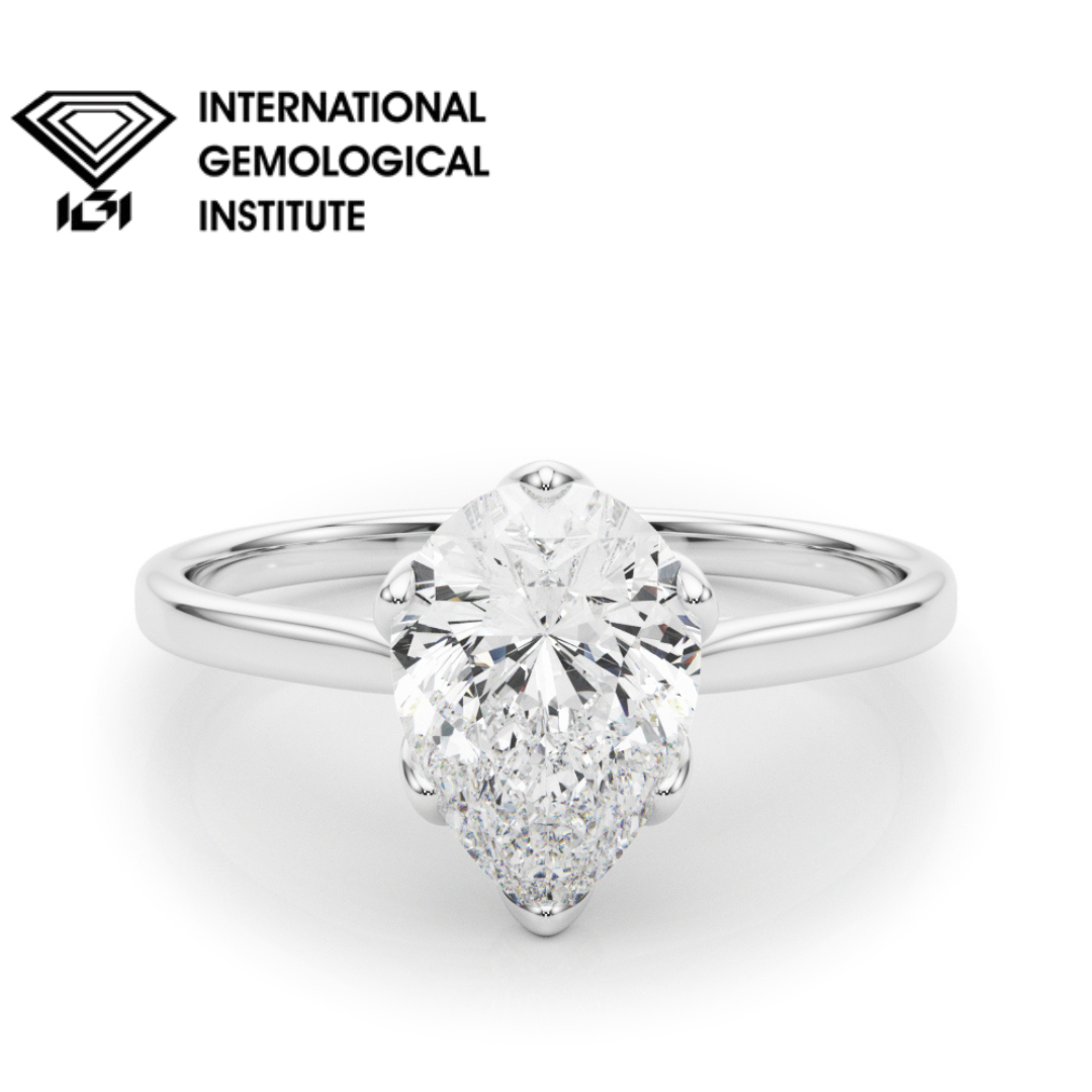 IGI Lab-Grown Pear Diamond Six Prong Set Solitaire Engagement Ring, D Color VVS Clarity