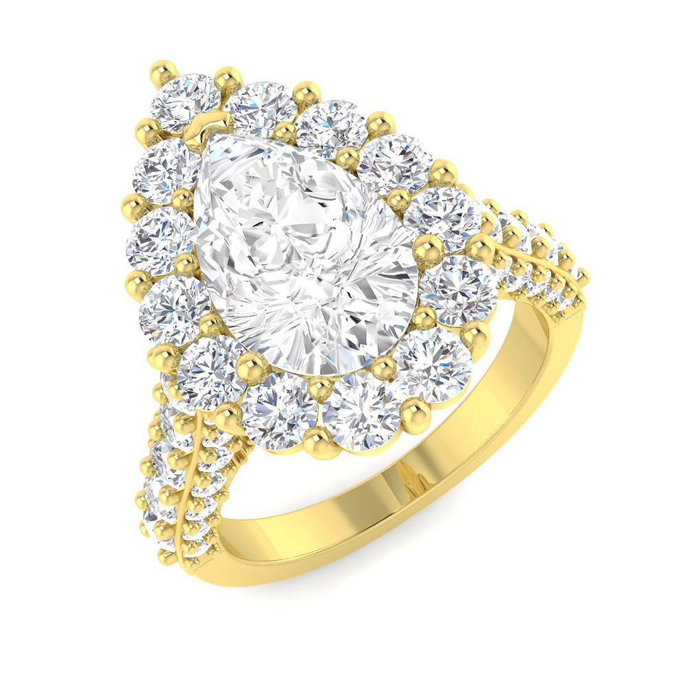 Celebrate your love story with the breathtaking Halo Diamond Ring, featuring Natural and Lab-Grown Round Cut Diamonds. This elegant halo design offers timeless brilliance and sophistication, making it an ideal choice for wedding wear, engagement ceremonies, anniversaries, and other special occasions. Crafted in your choice of 9K or 18K white, yellow, or rose gold, or luxurious 950 platinum, each ring is meticulously handcrafted in the UK and hallmarked by a UK Assay Office.