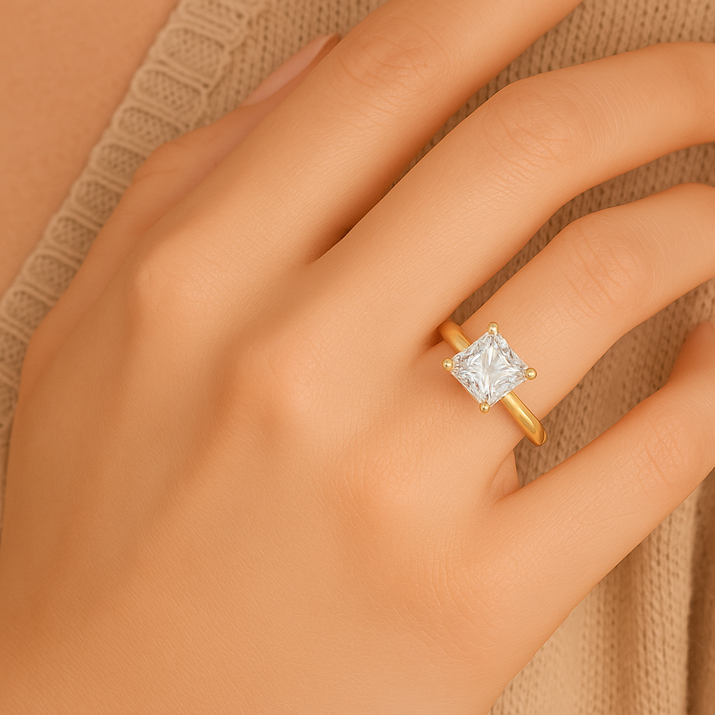 - Diamond Quality: Features a D color, VVS clarity lab-grown princess diamond, offering unparalleled brilliance, fire, and a sustainable alternative to natural diamonds.