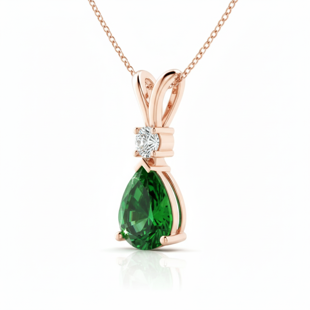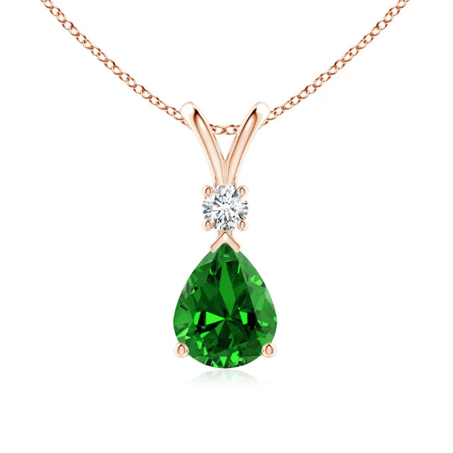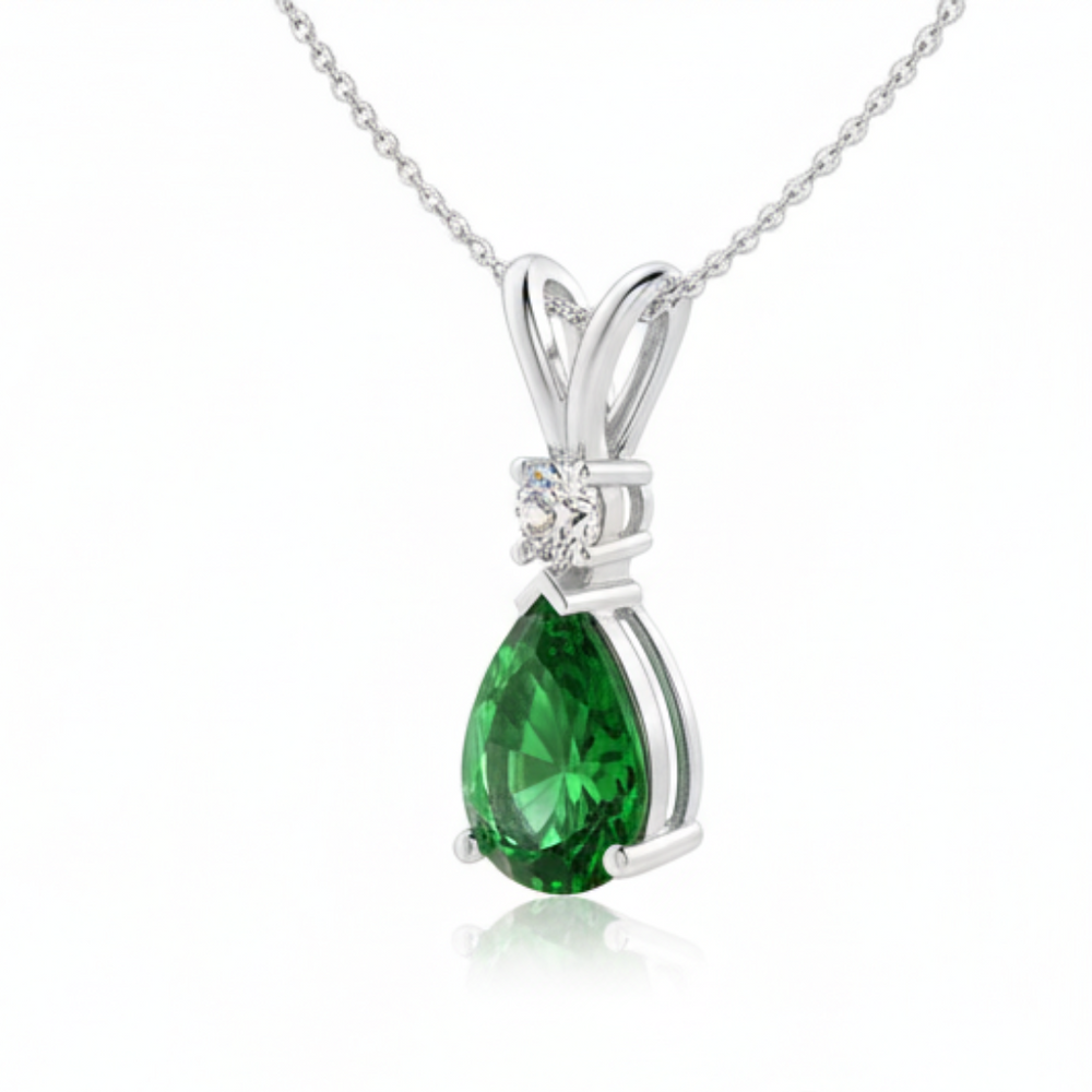 Elegant and sophisticated, this pear-shaped lab-grown emerald and diamond pendant is a timeless piece designed to elevate your everyday style. The deep, rich hue of the 10x8mm lab-grown emerald is perfectly complemented by the brilliant sparkle of a genuine round diamond accent.