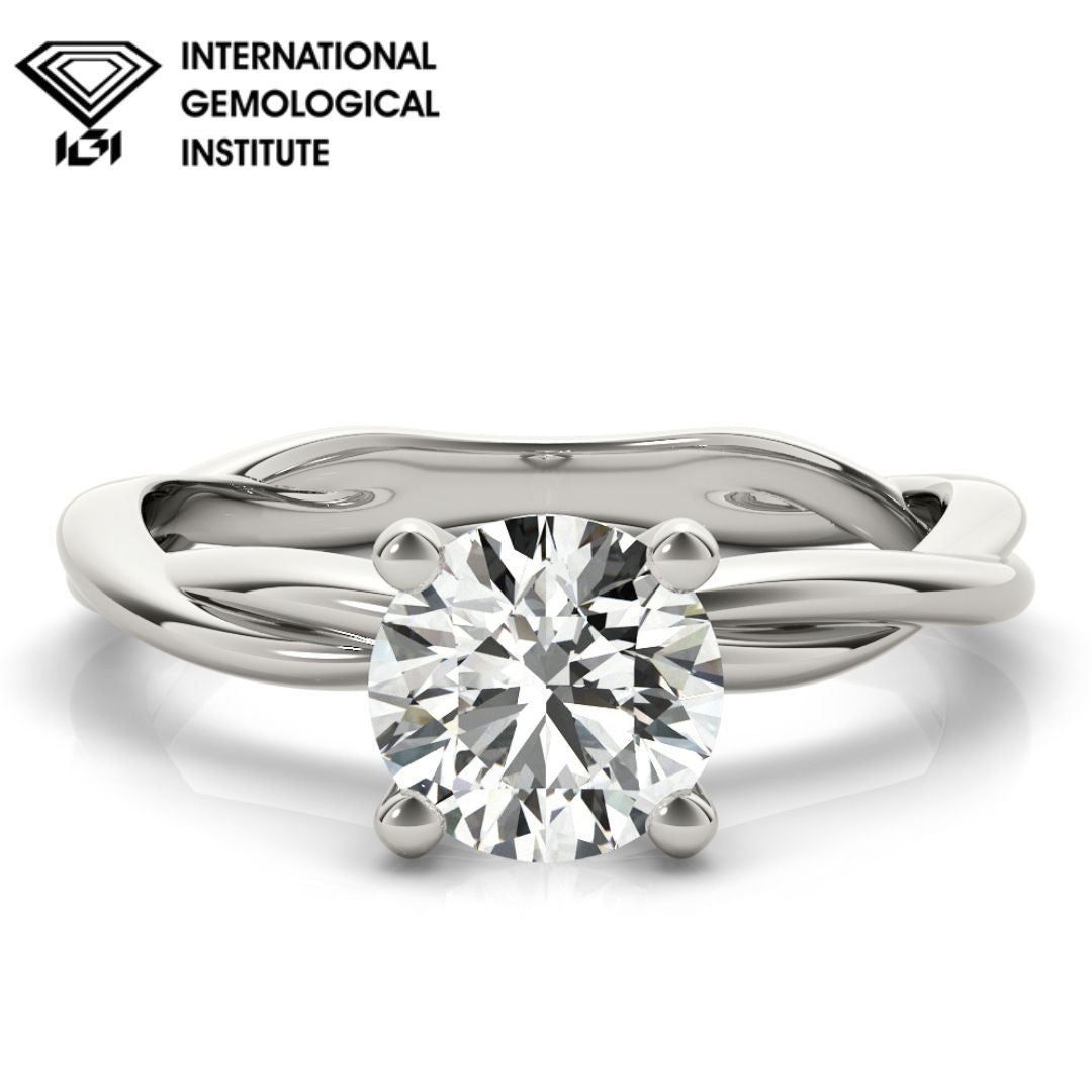 IGI Lab-Grown Round Cut D-VVS Diamond Twisted Engagement Ring.