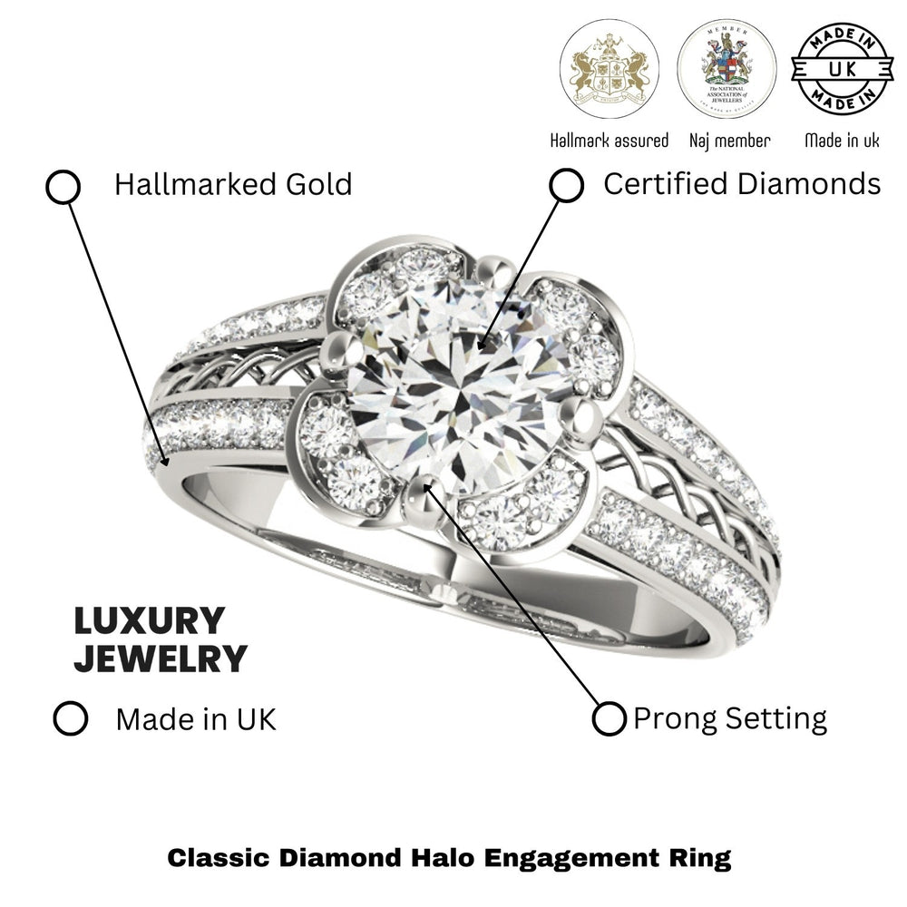Available in 9K, 18K White, Yellow, Rose Gold, or Platinum, with total diamond weights ranging from 0.50Ct to 2.00Ct, each ring is handcrafted in the UK and hallmarked by the UK Assay Office for guaranteed quality and authenticity.