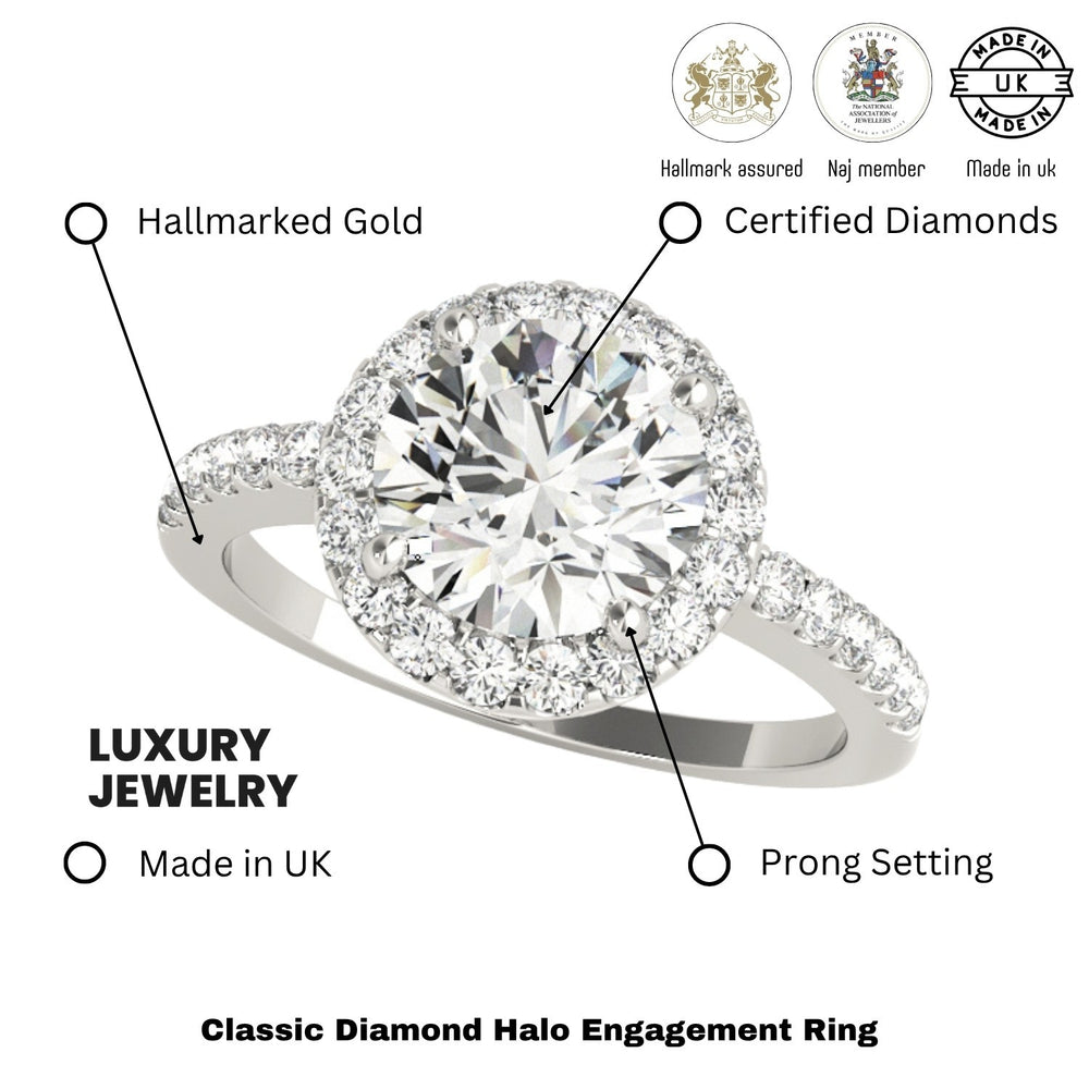 Available in 9K, 18K White, Yellow, Rose Gold, or Platinum, with total diamond weights ranging from 0.50Ct to 2.00Ct, each ring is handcrafted in the UK and hallmarked by the UK Assay Office for guaranteed quality and authenticity.