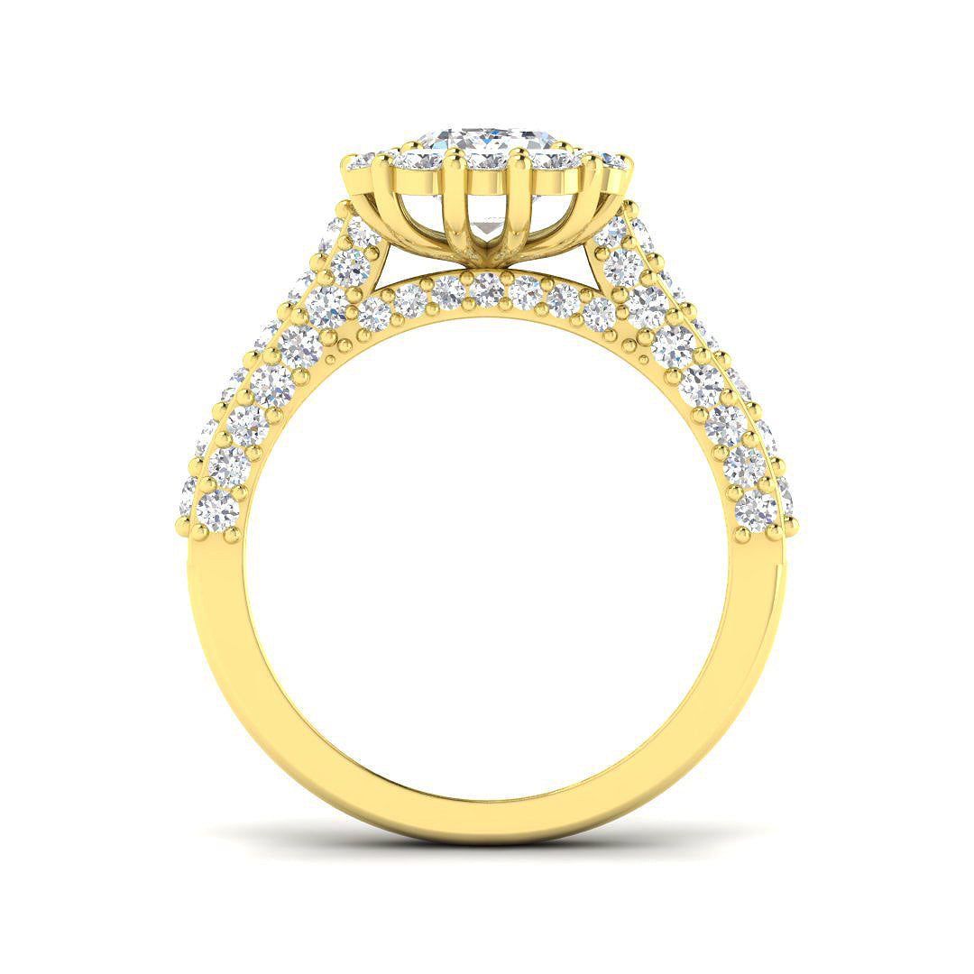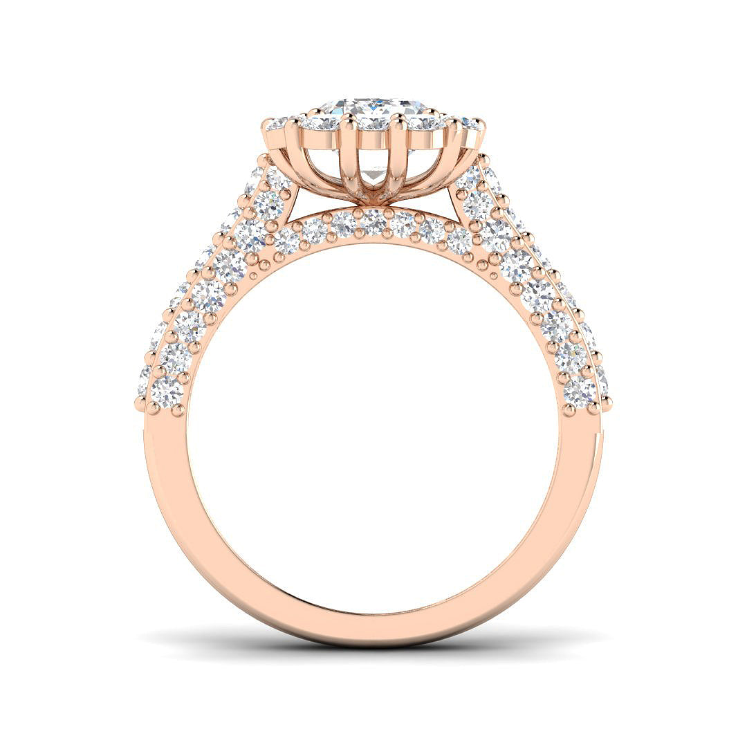 The Halo Diamond Ring represents eternal love and protection, where the center diamond is encircled by a radiant halo of sparkling stones, enhancing its brilliance and symbolizing the infinite bond you share.