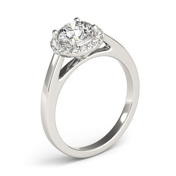 Round Cut Center with Round Pave Side Diamonds Engagement Ring