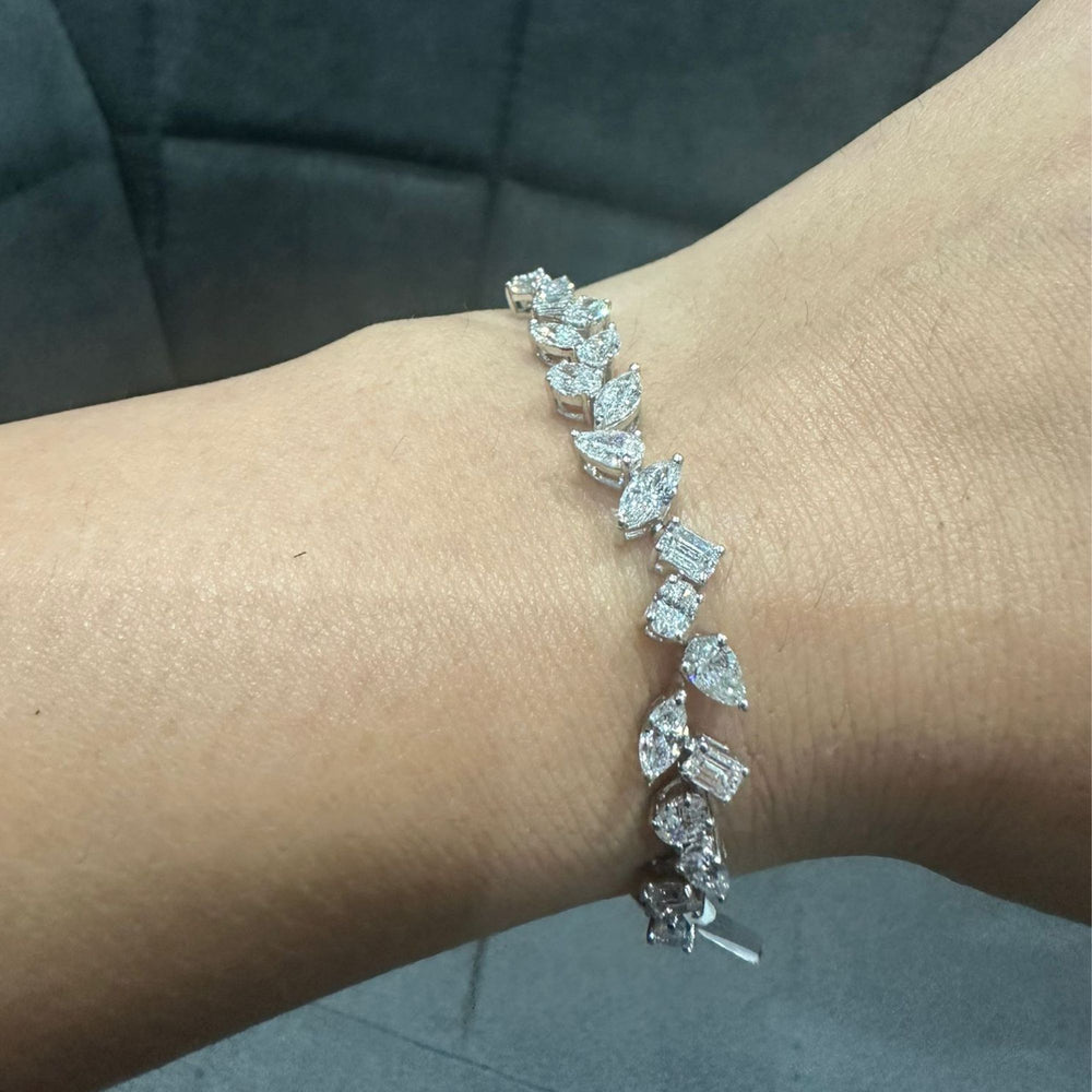 The elegant mix of fancy diamond shapes creates a fluid, leaf-like silhouette that shimmers beautifully with every movement. With diamonds graded GH color and VS–SI clarity, this bracelet offers bright, near-colorless sparkle and excellent clarity—making it perfect for weddings, anniversaries, special occasions, or luxurious everyday wear.