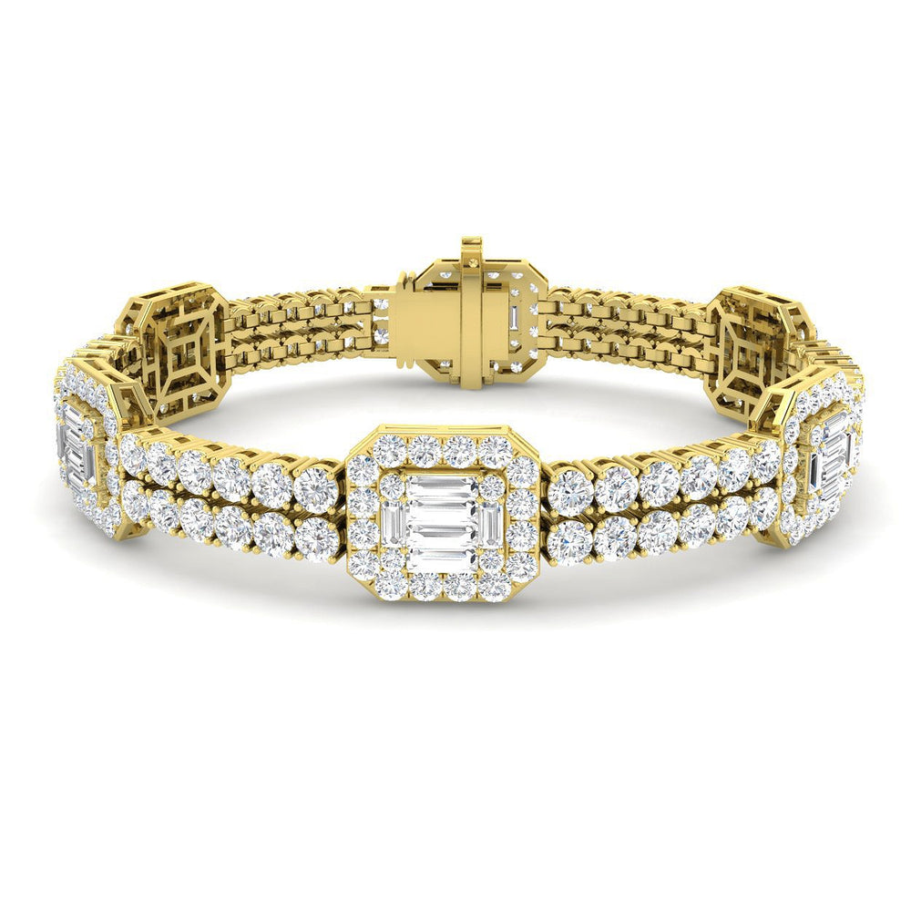 Expertly handcrafted in your choice of 9K or 18K Yellow, White, or Rose Gold, as well as premium 950 Platinum, this bracelet reflects exceptional craftsmanship and enduring luxury. Available in Lab Grown diamonds (D–E color, VVS clarity) or Natural diamonds (F–G color, VS–SI clarity), it is offered in total diamond weight options of 8.40 carat or 11.80 carat, delivering striking brilliance with elegant balance. Finished with a secure box clasp, it ensures a comfortable and confident fit for everyday wear.