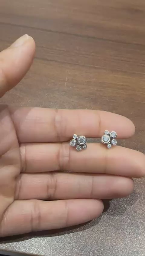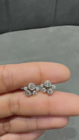 Add a touch of modern elegance to your everyday style with these stunning Natural Diamond Bubble Stud Earrings, exquisitely crafted in 18K white gold. Featuring a playful yet sophisticated bubble-inspired cluster design, each stud is adorned with brilliant round cut natural diamonds arranged in smooth bezel settings for a sleek, contemporary look.